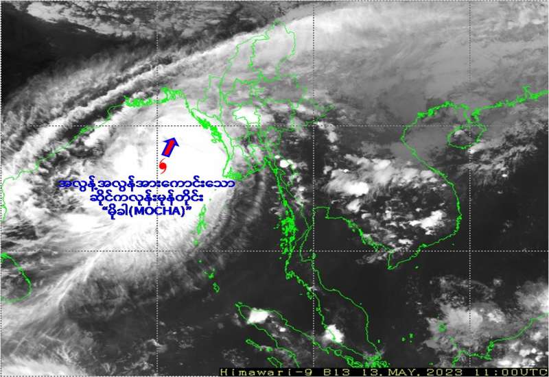 အားအလွန်ကောင်းသော ဆိုင်ကလုန်းမုန်တိုင်း မိုခါသည် ဘင်္ဂလားဒေ့ရှ်နိုင်ငံ ကော့ဘဇားမြို့နှင့် မြန်မာနိုင်ငံ ကျောက်ဖြူမြို့တို့ကြား စစ်တွေမြို့အနီးမှ မေလ ၁၄ ရက်နေ့ နေ့လယ်ပိုင်းတွင် ဖြတ်ကျော်ဝင်ရောက်နိုင်ကြောင်း မိုး/ဇလကခန့်မှန်းထားရာ မုန်တိုင်းလမ်းကြောင်း ကျရောက် နိုင်သည့်ဒေသများတွင် နေထိုင်ကြသည့်ပြည်သူများ ဘေးအန္တရာယ်လွတ်ကင်းရာများသို့ ရွှေ့ပြောင်း ခိုလှုံမှုများ ပြုလုပ်နေကြပြီဖြစ်သည်။
