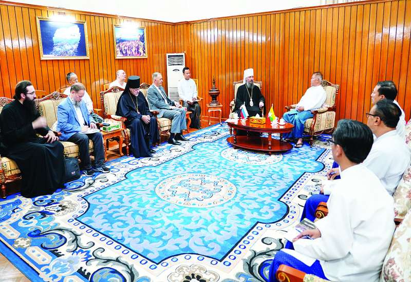 ဟိုတယ်နှင့်ခရီးသွားလာရေးဝန်ကြီးဌာန ပြည်ထောင်စုဝန်ကြီး ဦးအောင်သော်၊ ဝန်ကြီးဌာနမှ ညွှန်ကြားရေးမှူးချုပ်များ၊ ဒုတိယညွှန်ကြားရေးမှူးချုပ်များနှင့် ဘာသာရပ်တာဝန်ခံများသည် ယနေ့နံနက်ပိုင်းတွင် ရုရှားဖက်ဒရေးရှင်းနိုင်ငံ စင်ကာပူနှင့် အရှေ့တောင်အာရှဒေသလုံးဆိုင်ရာ အော်သိုဒေါ့ဘုန်းတော်ကြီး His Eminence Sergiy ဦးဆောင်သော ကိုယ်စားလှယ်အဖွဲ့ကို ဝန်ကြီးဌာနပြည်ထောင်စုဝန်ကြီး၏ ဧည့်ခန်းမ၌ လက်ခံတွေ့ဆုံသည်။
