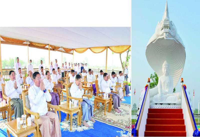 မာရဝိဇယဗုဒ္ဓ ရုပ်ပွားတော်မြတ်ကြီးတည်ဆောက်လျက်ရှိသည့် ပြည်ထောင်စုနယ်မြေ၊ နေပြည်တော်၊ ဒက္ခိဏသီရိမြို့နယ်ရှိ မာရဝိဇယဗုဒ္ဓဥယျာဉ်တော်အတွင်း၌ ကဆုန်လပြည့်ဗုဒ္ဓနေ့ကုသိုလ်တော်အဖြစ် မုစလိန္ဒနဂါးရုံဘုရားကျောင်းဆောင်တော်သို့ ဗုဒ္ဓရုပ်ပွားတော်ပင့်ဆောင်ပူဇော်ခြင်းနှင့် မဟာဗောဓိပင်တော် စိုက်ပျိုးပူဇော်ခြင်း မင်္ဂလာအခမ်းအနားတို့ကို ယနေ့နံနက်ပိုင်းတွင် ကျင်းပပြုလုပ်ရာ ဦးဆောင်ဘုရား ဒါယကာနိုင်ငံတော်စီမံအုပ်ချုပ်ရေးကောင်စီဥက္ကဋ္ဌ နိုင်ငံတော်ဝန်ကြီးချုပ် ဗိုလ်ချုပ်မှူးကြီးမင်းအောင်လှိုင် တက်ရောက်ပူဇော်သည်။