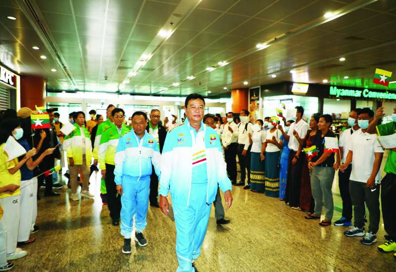 ၂၀၂၃ ခုနှစ် မေ ၅ ရက်မှ ၁၇ ရက်အထိ ကမ္ဘောဒီးယားနိုင်ငံတွင် ကျင်းပပြုလုပ်မည့် (၃၂) ကြိမ် မြောက် အရှေ့တောင်အာရှ အားကစားပြိုင်ပွဲသို့ ဖိတ်ကြားခံပုဂ္ဂိုလ်အဖြစ် တက်ရောက်မည့် မြန်မာနိုင်ငံအိုလံပစ်ကော်မတီဥက္ကဋ္ဌ အားကစားနှင့်လူငယ်ရေးရာဝန်ကြီးဌာန ပြည်ထောင်စုဝန်ကြီး ဦးမင်းသိန်းဇံနှင့်အတူ မြန်မာအားကစားအဖွဲ့ ခေါင်းဆောင်အားကစားနှင့် ကာယပညာဦးစီးဌာန ညွှန်ကြား ရေးမှူးချုပ် ဦးထွန်းမြင့်ဦးနှင့် မြန်မာ အားကစားအဖွဲ့သည် ယနေ့ မွန်းလွဲ ၁ နာရီတွင် မြန်မာ အမျိုးသား လေကြောင်းလိုင်း (စင်းလုံးငှားလေယာဉ်) အမှတ် UB-7017 ဖြင့် ရန်ကုန်မြို့မှ ထွက်ခွာကြရာ ရန်ကုန်တိုင်းဒေသကြီးဝန်ကြီးချုပ် ဦးစိုးသိန်းနှင့်အစိုးရအဖွဲ့ဝင် ဝန်ကြီးများ၊ အားကစားနှင့် ကာယပညာဦးစီးဌာနမှ တာဝန်ရှိပုဂ္ဂိုလ်များ၊ မိဘပြည်သူများက ရန်ကုန်အပြည် ပြည်ဆိုင်ရာ လေဆိပ်၌ လိုက်လံ ပို့ဆောင်နှုတ်ဆက်ကြသည်။