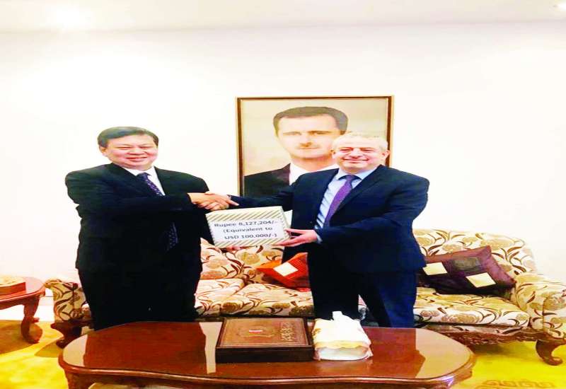 ဆီးရီးယားအာရပ်သမ္မတနိုင်ငံတွင် ဖေဖော်ဝါရီ ၆ ရက်က မြေငလျင်လှုပ်ခတ်မှုကြောင့် ထိခိုက်နစ်နာခဲ့ရသည့် ပြည်သူများအတွက် မြန်မာနိုင်ငံအစိုးရက လူသားချင်းစာနာထောက်ထားမှု အကူအညီအဖြစ် အလှူငွေ အမေရိကန်ဒေါ်လာ ၁၀၀၀၀၀ နှင့် ညီမျှသည့် အိန္ဒိယ ရူပီးငွေ ၈၁၂၇၂၀၄ ကို အိန္ဒိယနိုင်ငံဆိုင်ရာ မြန်မာ သံအမတ်ကြီး ဦးမိုးကျော်အောင်က အိန္ဒိယနိုင်ငံဆိုင်ရာ ဆီးရီးယား သံအမတ်ကြီး H.E. Dr. Bassam Seifeddin Alkhatib ထံသို့ ဧပြီ ၂၈ ရက်တွင် လွှဲပြောင်းပေးအပ်လှူဒါန်း ခဲ့ကြောင်း သိရသည်။