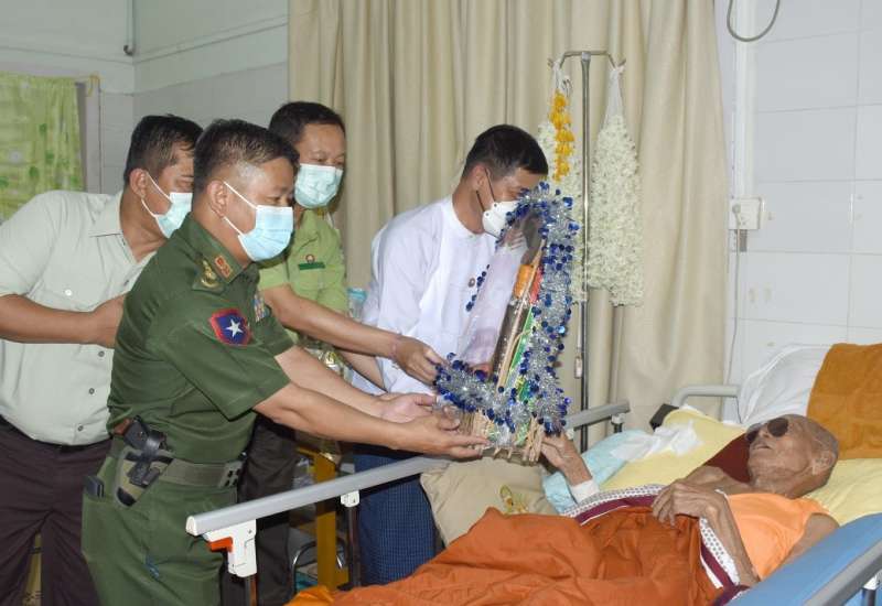 မန္တလေးအထွေထွေရောဂါကုဆေးရုံကြီးရှိ မန်းတောင်ရိပ် အထွေထွေရောဂါကုသဆောင်တွင် ကျန်းမာရေးစောင့်ရှောက်မှုများ ခံယူသီတင်းသုံးတော်မူနေသည့် နိုင်ငံတော်သံဃမဟာနာယကအဖွဲ့ဥက္ကဋ္ဌ ဒေါက်တာဘဒ္ဒန္တကုမာရာဘိဝံသ ဗန်းမော်ကျောင်းတိုက် ဆရာတော်ကြီး၏ ကျန်းမာရေးတိုးတက်ကောင်းမွန်နေမှုအခြေအနေအား လုံခြုံရေးနှင့်နယ်စပ်ရေးရာဝန်ကြီး မန္တလေးတိုင်းဒေသကြီးအစိုးရအဖွဲ့ ဝန်ကြီးချုပ်ဦးမျိုးအောင်၊ ဗိုလ်မှူးကြီးကျော်ကျော်မင်း၊ တိုင်းဒေသကြီးအစိုးရအဖွဲ့ အတွင်းရေးမှူးနှင့် တာဝန်ရှိသူက ယနေ့နံနက်ပိုင်းက သွားရောက်ဖူးမြော်ကြည့်ရှုခဲ့ကြသည်။
