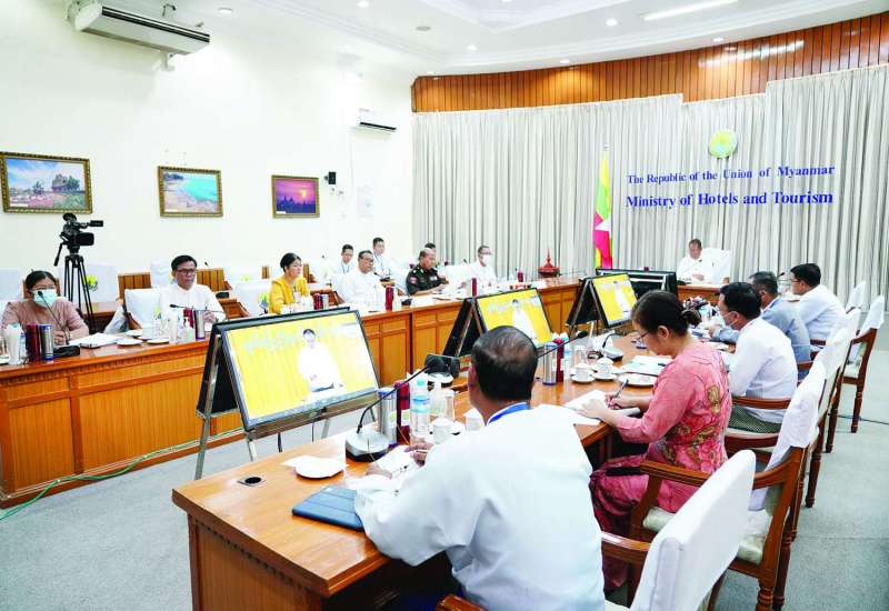 နယ်စပ်ဂိတ်များမှတစ်ဆင့် ခရီးသွားဧည့်သည်များ ဝင်ရောက်၊ ထွက်ခွာလည်ပတ်နိုင်ရေး ညှိနှိုင်းအစည်းအဝေးကို ယနေ့နံနက်ပိုင်းက ဟိုတယ်နှင့်ခရီးသွားလာရေးဝန်ကြီးဌာန နီလာခန်းမ၌ ကျင်းပသည်။