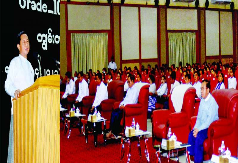 နိုင်ငံတော်စီမံအုပ်ချုပ်ရေးကောင်စီဥက္ကဋ္ဌ နိုင်ငံတော်ဝန်ကြီးချုပ် ဗိုလ်ချုပ်မှူးကြီးမင်းအောင်လှိုင်သည် ပြည်ထောင်စုတိုင်းရင်းသားလူမျိုးများဖွံ့ ဖြိုးရေးတက္ကသိုလ် ပညာရေးဘွဲ့ ၅ နှစ်သင်တန်း အမှတ်စဉ် (၅) ကျောင်းသား၊ ကျောင်းသူများကို ယနေ့မွန်းလွဲပိုင်းတွင် နိုင်ငံတော်စီမံအုပ်ချုပ်ရေးကောင်စီဥက္ကဋ္ဌရုံး၊ ငုရွှေဝါခန်းမ၌တွေ့ဆုံ အမှာစကားပြောကြားသည်။