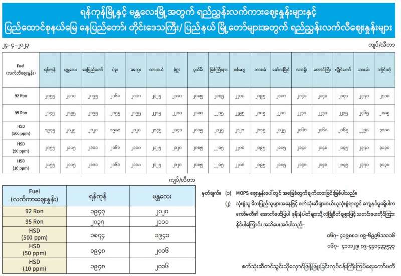 စီးပွားရေးနှင့် ကူးသန်းရောင်းဝယ်ရေးဝန်ကြီးဌာန စားသုံးဆီတင်သွင်းသိုလှောင် ဖြန့်ဖြူးခြင်းလုပ်ငန်း ကြီးကြပ်ရေးကော်မတီအနေဖြင့် စားအုန်းဆီကမ္ဘာ့ဈေးနှုန်း ဖြစ်ပေါ်ပြောင်းလဲမှုနှင့်အညီ ပြည်တွင်း၌ ဖြစ်သင့်ဖြစ်ထိုက်သည့် ဈေးနှုန်းများ ဖြစ်ပေါ်စေရေး ထိန်းကျောင်းဆောင်ရွက်လျက်ရှိပြီး စားအုန်းဆီ အဓိကထုတ်လုပ် တင်ပို့သည့် မလေးရှားနိုင်ငံနှင့် အင်ဒိုနီးရှားနိုင်ငံတို့တွင် ဖြစ်ပေါ်နေသည့် FOB ဈေးနှုန်းများကို နေ့စဉ်စောင့်ကြည့်ကာ သယ်ယူပို့ဆောင်ခ ကုန်ကျစရိတ်များ၊ ဘဏ်စရိတ်များ၊ အခွန်အခများ ထည့်သွင်းတွက်ချက်၍ ပြည်တွင်းဈေးကွက်၌ ရောင်းဝယ်ဖောက်ကားရမည့် အခြေခံလက်ကားရည်ညွှန်းဈေးနှုန်းကို ထုတ်ပြန်ပေးလျက်ရှိသည်။