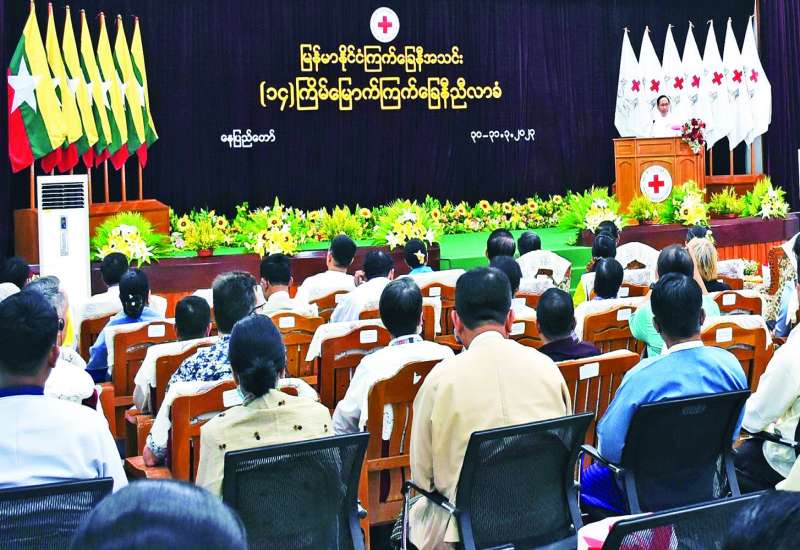 (၁၄) ကြိမ်မြောက် မြန်မာနိုင်ငံ ကြက်ခြေနီညီလာခံဖွင့်ပွဲ အခမ်းအနားကို ယနေ့နံနက် ၉ နာရီတွင် နေပြည်တော်ရှိ မြန်မာနိုင်ငံ ကြက်ခြေနီအသင်း ဌာနချုပ်၌ ကျင်းပသည်။