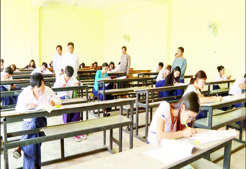 ၂၀၂၂-၂၀၂၃ ပညာသင်နှစ် တက္ကသိုလ်ဝင်စာမေးပွဲကို မတ် ၈ ရက်တွင် စတင်ကျင်းပလျက်ရှိရာ ယနေ့တွင် နဝမနေ့အဖြစ် စိတ်ကြိုက်မြန်မာစာဘာသာရပ်ကို ရန်ကုန်တိုင်းဒေသကြီးနှင့် မန္တလေးတိုင်းဒေသကြီးတို့ရှိ အခြေခံပညာအထက်တန်းကျောင်းများ၌ ကျောင်းသား၊ ကျောင်းသူများ ဝင်ရောက်ဖြေဆိုလျက်ရှိသည်။