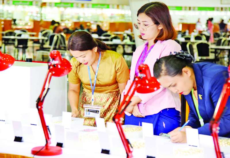 (၅၈)ကြိမ်မြောက် မြန်မာ့ကျောက်မျက်ရတနာပြပွဲပထမနေ့ကို ယနေ့နံနက်ပိုင်းတွင် နေပြည်တော်ရှိ မဏိရတနာကျောက်စိမ်းခန်းမ၌ ကျင်းပရာ ပြည်တွင်း ပြည်ပရတနာကုန်သည်များဖြင့် စည်ကားလျက်ရှိသည်။