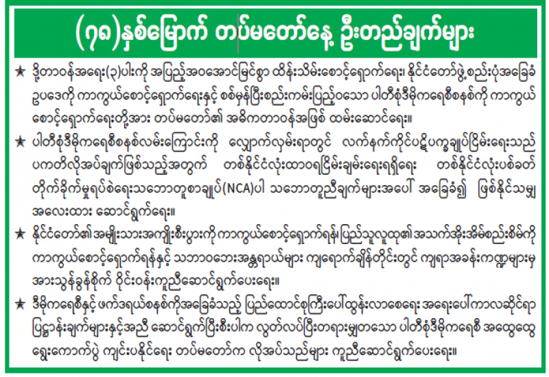 ရခိုင်ပြည်နယ် အတွင်းရှိ ကမ်းရိုးတန်း ဒေသတစ်လျှောက်မှ ဒေသခံပြည်သူများအား ကျန်းမာ ရေးစောင့်ရှောက်မှုလုပ်ငန်းများဆောင်ရွက်ပေးရန် တပ်မတော်ပင်လယ်သွား ဆေးရုံရေယာဉ် (သံလွင်)ဖြင့် ရောက်ရှိနေသောတပ်မတော်နှင့် ကျန်းမာရေးဝန်ကြီးဌာနတို့မှ အထူးကုဆေး အဖွဲ့များမှ ပါရဂူများ၊ ဆေးမှူးများနှင့် သူနာပြုများသည် ယနေ့တွင် မာန်အောင်မြို့နှင့် ပတ်ဝန်းကျင်ကျေးရွာများမှ ခွဲစိတ်ကုသပြီးသော ဒေသခံပြည်သူများကို ဆေးရုံရေယာဉ်ပေါ်၌ တာဝန်ရှိသူများက လိုက်လံကြည့်ရှုအားပေး၍ မျက်မှန်များတပ်ဆင်ပေးပြီး အာဟာရဖြည့်စားသောက်ဖွယ်ရာများနှင့် လက်ဆောင်ပစ္စည်းများ ထောက်ပံ့ပေးအပ် ကြသည်။ ထို့နောက် အဆိုပါလူနာများကို မာန်အောင်မြို့ဆိပ်ကမ်းသို့တပ်မတော် ရေယာဉ်ဖြင့် ပြန်လည်ပို့ဆောင်ပေးသည်။