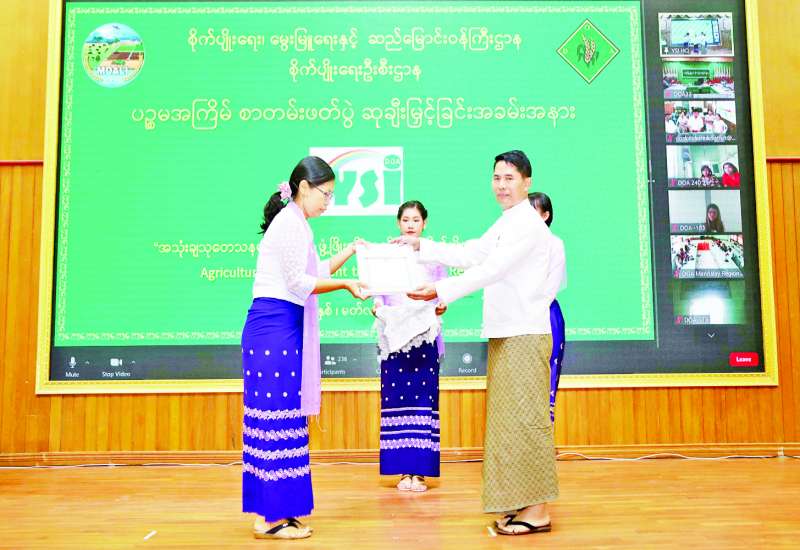“အသုံးချသုတေသနများမှသည် ဖွံ့ဖြိုးတိုးတက်သော စိုက်ပျိုးရေးကဏ္ဍဆီသို့” ခေါင်းစဉ်ဖြင့် ကျင်းပသည့် စိုက်ပျိုးရေးဦးစီးဌာန၏ (၅)ကြိမ်မြောက် စာတမ်းဖတ်ပွဲ ဆုချီးမြှင့်ပွဲ အခမ်းအနားကို ယနေ့နံနက်ပိုင်းက စိုက်ပျိုးရေး၊ မွေးမြူရေးနှင့် ဆည်မြောင်းဝန်ကြီးဌာန ပြည်ထောင်စုဝန်ကြီးရုံး စုဝေးဆောင်ခန်းမ၌ ကျင်းပသည်။
