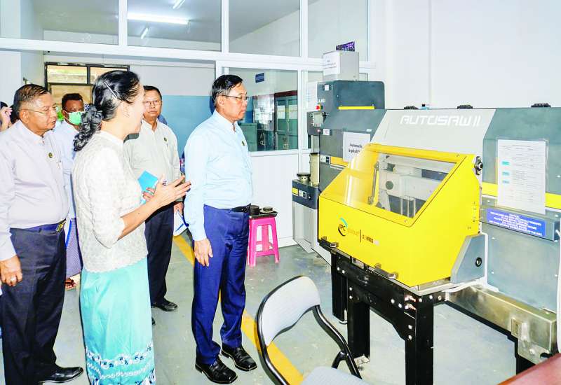 ဆောက်လုပ်ရေးဝန်ကြီးဌာန ပြည်ထောင်စုဝန်ကြီး ဦးမျိုးသန့်သည် ညွှန်ကြားရေးမှူးချုပ်များ၊ တာဝန်ရှိသူများနှင့်အတူ ယနေ့တွင်ရန်ကုန်တိုင်းဒေသကြီး၊ သင်္ဃန်းကျွန်းမြို့နယ်ရှိ ဗဟိုသင်တန်းကျောင်း (သုဝဏ္ဏ) အဆောက်အဦသုတေသနနှင့် အရည်အသွေးထိန်းသိမ်းရေးဌာနခွဲ နှင့် လမ်းသုတေသနနှင့် အရည်အသွေးထိန်းသိမ်းရေးဌာနခွဲရုံးသို့ ကြည့်ရှုစစ်ဆေးသည်။