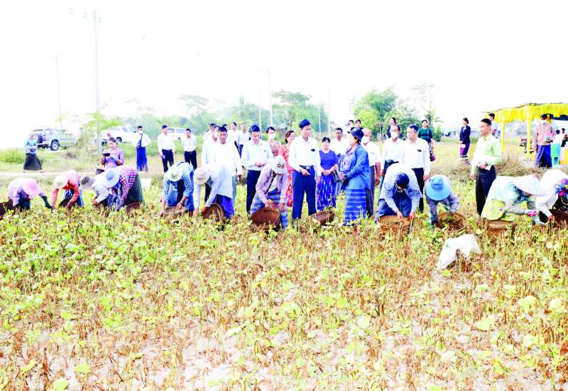 သမဝါယမနှင့် ကျေးလက်ဖွံ့ဖြိုးရေးဝန်ကြီးဌာန ဒုတိယဝန်ကြီး ဦးမြင့်စိုးသည် သမဝါယမဦးစီးဌာန ညွှန်ကြားရေးမှူးချုပ် ဦးအောင်သူရ၊ ဒုတိယညွှန်ကြားရေးမှူးချုပ်များနှင့်အတူ ယနေ့နံနက်ပိုင်းတွင် ရန်ကုန်တိုင်းဒေသကြီး ခရမ်းမြို့နယ် ကြူတောကျေးရွာသို့ရောက်ရှိပြီး ပဲတီစိမ်းစိုက် တောင်သူများ၏ စိုက်ခင်းများရိတ်သိမ်းနေမှု၊ အထွက်နှုန်းတိုးတက်မှုတို့ကို မေးမြန်းလေ့လာ ကြည့်ရှုအားပေးသည်။