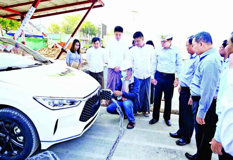 လျှပ်စစ်သုံးယာဉ်များ ပြေးဆွဲ/အသုံးပြုရေးနှင့် အခြေခံအဆောက် အအုံများ အကောင်အထည်ဖော်ရေး လုပ်ငန်းကော်မတီဥက္ကဋ္ဌ၊ ဆောက်လုပ်ရေးဝန်ကြီးဌာန ဒုတိယဝန်ကြီး ဦးဝင်းဖေသည် လုပ်ငန်းကော်မတီ အဖွဲ့ဝင်၊ ကော်မတီအတွင်းရေးမှူး၊ တွဲဖက်အတွင်းရေးမှူး၊ တာဝန်ရှိသူများနှင့်အတူ ယနေ့တွင် နေပြည်တော် ကောင်စီနယ်မြေအတွင်း လျှပ်စစ်သုံးယာဉ်များ ပြေးဆွဲ/ အသုံးပြုရေးအတွက် ဦးဆောင် ကော်မတီ၏ ခွင့်ပြုချက်ဖြင့် NPK Motors Co.,Ltdမှ တည်ဆောက် လျက်ရှိသည့် နေပြည်တော် သပြေကုန်းရှိ Charging Station တည်ဆောက်လျက် ရှိသည့် လုပ်ငန်းခွင်သို့ ရောက်ရှိရာ NPK Motors Co.,Ltd၏ တာဝန်ရှိသူက လုပ်ငန်းဆောင်ရွက်နေမှုကို ရှင်းလင်းတင်ပြပြီး Charging Station တည်ဆောက်ခြင်းနှင့် လျှပ်စစ်သုံးတက္ကစီယာဉ် BYD အား လျှပ်စစ်အားသွင်းခြင်း၊ စမ်းသပ်မောင်းနှင်ခြင်း လုပ်ငန်းဆောင်ရွက်ပုံ သရုပ်ပြသမှုကို ကြည့်ရှုစစ်ဆေးသည်။