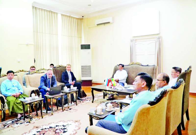 စက်မှုဝန်ကြီးဌာန ပြည်ထောင်စုဝန်ကြီး ဒေါက်တာချာလီသန်းသည် ရုရှားဖက်ဒရေးရှင်းနိုင်ငံ SMM ကုမ္ပဏီမှ အပြည်ပြည်ဆိုင်ရာစီမံကိန်းဌာနအကြီးအကဲ Mr. Roman Siurin ဦးဆောင်သည့် ကိုယ်စားလှယ်အဖွဲ့ကို ယနေ့မွန်းလွဲပိုင်းတွင် စက်မှုဝန်ကြီးဌာန ဧည့်ခန်းမဆောင်၌ လက်ခံတွေ့ဆုံသည်။