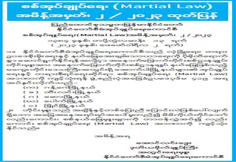 စစ်အုပ်ချုပ်ရေး (Martial Law)အမိန့်အမှတ်၊ ၂ / ၂၀၂၃ ထုတ်ပြန်