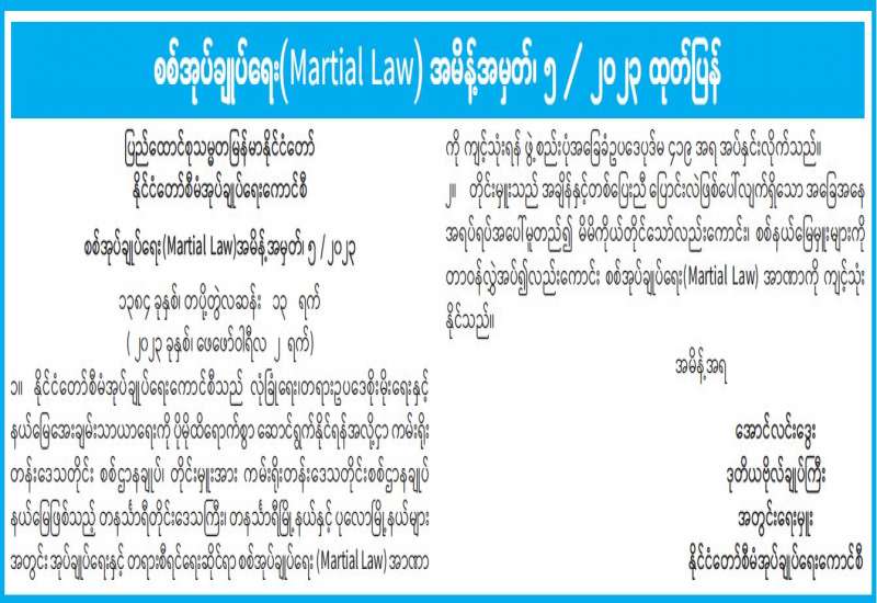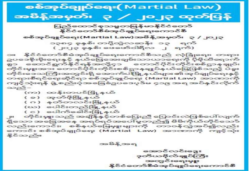 စစ်အုပ်ချုပ်ရေး (Martial Law) အမိန့်အမှတ်၊ ၇ /၂၀၂၃ ထုတ်ပြန်