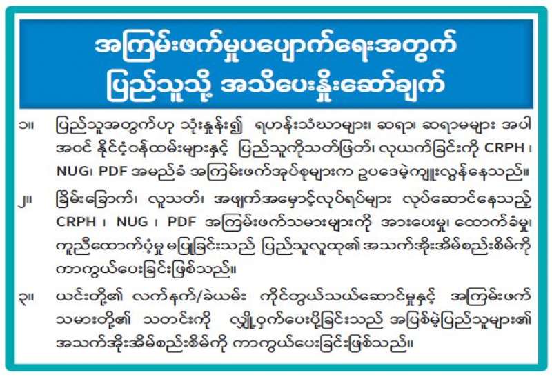 အကြမ်းဖက်မှုပပျောက်ရေးအတွက် ပြည်သူသို့အသိပေးနှိုးဆော်ချက်