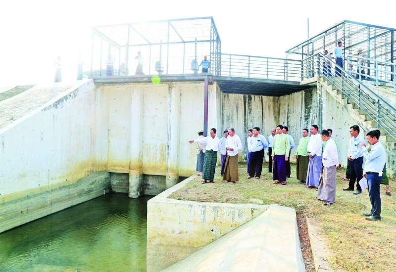 စိုက်ပျိုးရေး၊ မွေးမြူရေးနှင့် ဆည်မြောင်းဝန်ကြီးဌာန၊ သမဝါယမနှင့်ကျေးလက်ဖွံ့ဖြိုးရေးဝန်ကြီးဌာန ပြည်ထောင်စုဝန်ကြီး ဦးလှမိုးသည် ဌာနဆိုင်ရာတာဝန်ရှိသူများနှင့်အတူ ယနေ့ညနေပိုင်းတွင် နေပြည်တော် လယ်ဝေးမြို့နယ် မဒန်းရေလွှဲဆည်နှင့် ဆည်ရေသောက်စနစ်တည်ဆောက်ရေးလုပ်ငန်းခွင်ကို ကွင်းဆင်းကြည့်ရှုစစ်ဆေးရာ ဆည်မြောင်းနှင့်ရေအသုံးချမှုစီမံခန့်ခွဲရေးဦးစီးဌာန ညွှန်ကြားရေးမှူးချုပ် ဦးဗိုလ်ဗိုလ်ကျော်နှင့် တာဝန်ရှိသူများက ဆည်ရေပေးဝေမှု၊ ရေသောက်စနစ်နှင့် အကျိုးပြုဧရိယာများနှင့်ပတ်သက်၍ ရှင်းလင်းတင်ပြကြသည်။