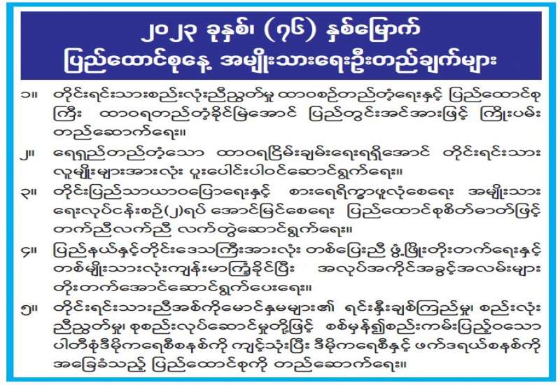 မြန်မာနိုင်ငံသည် တိုင်းရင်းသားလူမျိုးပေါင်းစုံ စုစည်းနေထိုင်ကြသည့် ပြည်ထောင်စုနိုင်ငံ ဖြစ်သည်။ ပြည်ထောင်စုသားအားလုံး၏ စုစည်းညီညွတ်မှု စွမ်းပကားဖြင့် နိုင်ငံတော်ကို စောင့်ရှောက်ကာကွယ်ခဲ့ကြသလို နိုင်ငံတော်ကြီး တည်တံ့ခိုင်မြဲတိုးတက်ရေးအတွက်လည်း လက်တွဲကြိုးပမ်းဆောင်ရွက်ခဲ့ကြသည်။ တိုင်းရင်းသားလူမျိုးများအားလုံး စည်းလုံးညီညွတ်ခဲ့ကြမှုကို အခိုင်အမာ သက်သေထူနိုင်ခဲ့သဖြင့် ဆုံးရှုံးခဲ့သည့်လွတ်လပ်ရေး ပြန်လည်ရရှိလာခဲ့သည်။
