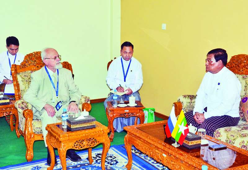 လျှပ်စစ်စွမ်းအားဝန်ကြီးဌာန ပြည်ထောင်စုဝန်ကြီး ဦးသောင်းဟန်သည် ရုရှား - မြန်မာ ချစ်ကြည်ရေးနှင့် ပူးပေါင်းဆောင်ရွက်ရေးအသင်း ဒုတိယဥက္ကဋ္ဌ Mr. Anatoly Bulochnikov ဦးဆောင်သည့် ကိုယ်စားလှယ်အဖွဲ့ကို ယနေ့နံနက် ၁၀ နာရီ တွင် လျှပ်စစ်စွမ်းအားဝန်ကြီးဌာန ရုံးအမှတ် (၂၇) ပြည်ထောင်စုဝန်ကြီး၏ဧည့်ခန်းမ၌ တွေ့ဆုံသည်။