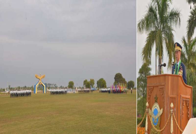 ပြည်ထောင်စုသမ္မတမြန်မာနိုင်ငံတော်၊ တပ်မတော်(လေ)၏ (၇၅)နှစ်မြောက် စိန်ရတုနှစ်ပတ်လည်နေ့အခမ်းအနားတွင် နိုင်ငံတော်နှင့် တပ်မတော်၏ လေကြောင်းစွမ်းပကား မြင့်မားစေရန်အတွက် လေယာဉ်၊ ရဟတ်ယာဉ်များ တပ်တော်ဝင်ခြင်းအခမ်းအနားကို ယနေ့နံနက်ပိုင်းတွင် မိတ္ထီလာတပ်နယ်ရှိ လေကြောင်းအတက်သင် လေတပ်စခန်းဌာနချုပ်၌ ကျင်းပပြုလုပ်ရာ နိုင်ငံတော်စီမံအုပ်ချုပ်ရေးကောင်စီဥက္ကဋ္ဌ တပ်မတော်ကာကွယ်ရေးဦးစီးချုပ် ဗိုလ်ချုပ်မှူးကြီးမင်းအောင်လှိုင် တက်ရောက်ချီးမြှင့်သည်။