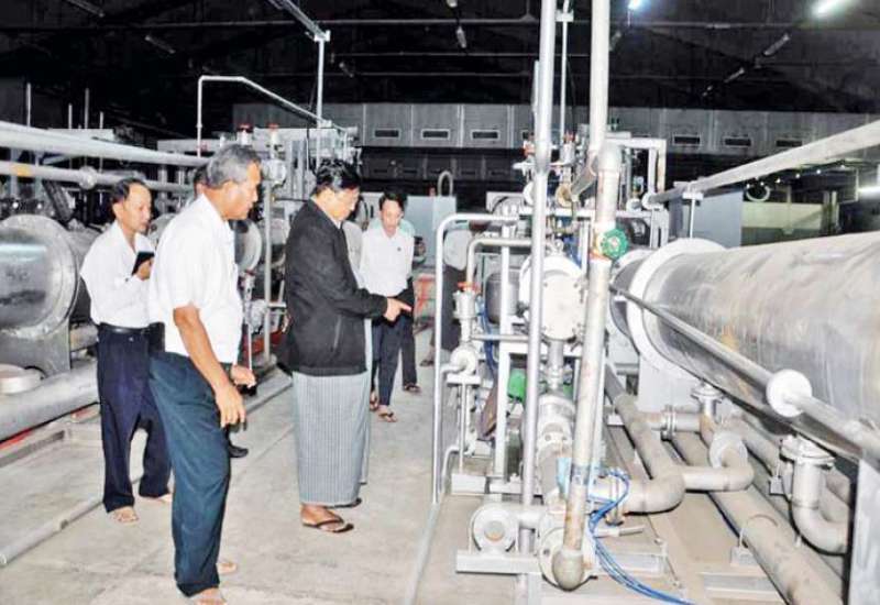 စက်မှုဝန်ကြီးဌာန ပြည်ထောင်စုဝန်ကြီး ဒေါက်တာချာလီသန်းသည် တာဝန်ရှိသူများနှင့်အတူ ယနေ့နံနက်ပိုင်းတွင် ပဲခူးတိုင်းဒေသကြီး ရွှေတောင်မြို့ရှိ အမှတ်(၁)အထည်စက်ရုံ (ရွှေတောင်) စက်ရုံခန်းမသို့ရောက်ရှိရာ စက်ရုံမှူးက လုပ်ငန်းလည်ပတ် အကောင်အထည်ဖော် ဆောင်ရွက်နေမှုကို ရှင်းလင်းတင်ပြသည်။