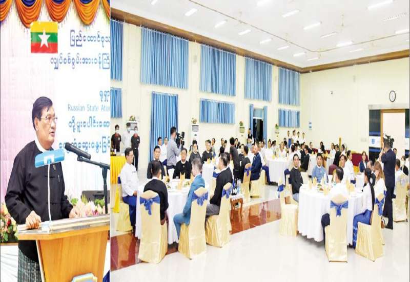 မြန်မာ-ရုရှား နှစ်နိုင်ငံပူးပေါင်း၍ စီမံကိန်းများ အကောင်အထည်ဖော်ဆောင်ရွက်မည့် အစီအစဉ်အရ လျှပ်စစ်စွမ်းအားဝန်ကြီးဌာန၊ သိပ္ပံနှင့်နည်းပညာဝန်ကြီးဌာနနှင့် ရုရှားဖက်ဒရေးရှင်းနိုင်ငံ Russian State Atomic Energy Corporation “ROSATOM” တို့ ပူးပေါင်းဆောင်ရွက်ကြမည့် စီမံကိန်းဆိုင်ရာများ တွေ့ဆုံဆွေးနွေးခြင်း အထိမ်းအမှတ် ဂုဏ်ပြုညစာစားပွဲ အခမ်းအနားကို ယနေ့ညနေ ၆ နာရီခွဲက နေပြည်တော်ရှိ ရုံးအမှတ် (၂၇) လျှပ်စစ်စွမ်းအားဝန်ကြီးဌာန ရဲရွာခန်းမ၌ ကျင်းပသည်။