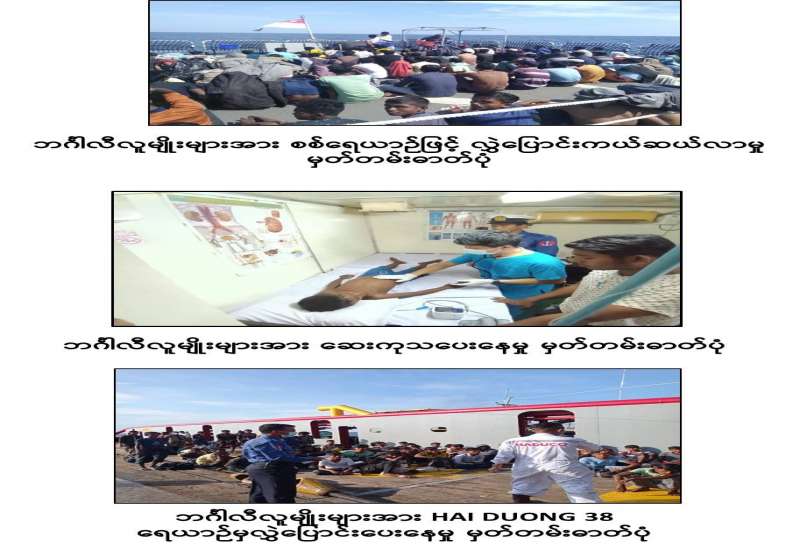 မြန်မာ့ရေနံနှင့်သဘာဝဓာတ်ငွေ့လုပ်ငန်း၏ ရေနံရှာဖွေတူးဖော်ရေးလုပ်ငန်းများတွင် အကျိုးတူပူးပေါင်းဆောင်ရွက်လျက်ရှိသော PTTEP International Limited မှ အထောက်အကူပြုရေယာဉ်များဖြစ်သည့် HAI DUONG 29 နှင့် HAI DUONG 38 ရေယာဉ်တို့သည် ဇောတိကစီမံကိန်းကမ်းလွန်လုပ်ကွက်၌ လုပ်ငန်းများဆောင်ရွက်ရန် မြန်မာနိုင်ငံရေပြင်အတွင်း ဖြတ်သန်းလာစဉ် ဒီဇင်ဘာ ၇ ရက် နံနက် ၅ နာရီ ၄၅ မိနစ်ခန့်တွင် မြိတ်မြို့၏အနောက်တောင်ဘက် ၁၅၅ မိုင်ခန့်အကွာသို့အရောက်၌ ဘင်္ဂါလီလူမျိုးများ တင်ဆောင်လာသည့် လှေ ၁ စီးသည်ရေဝင်၍ နစ်မြုပ်လုနီးပါးဖြစ်နေသည်ကို တွေ့ရှိရသဖြင့် ကယ်ဆယ်ထားကြောင်း တပ်မတော်(ရေ)မှ လုံခြုံရေးစစ်ရေယာဉ်များသို့ သတင်းပေးပို့လာခဲ့သည်။