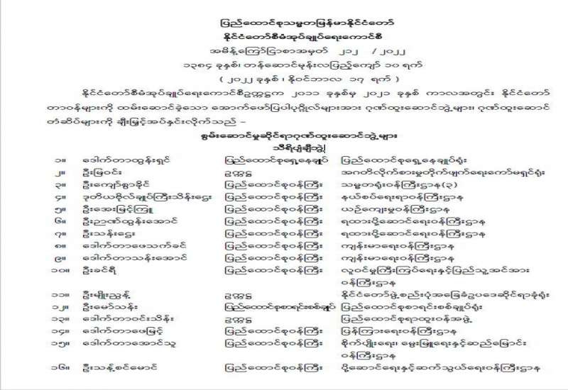 ရန်ကုန်မြို့နှင့် မန္တလေးမြို့အတွက် ရည်ညွှန်းလက်ကားဈေးနှုန်းများနှင့် ပြည်ထောင်စုနယ်မြေ နေပြည်တော်၊ တိုင်းဒေသကြီး/ပြည်နယ် မြို့တော်များအတွက် ရည်ညွှန်းလက်လီဈေးနှုန်းများ