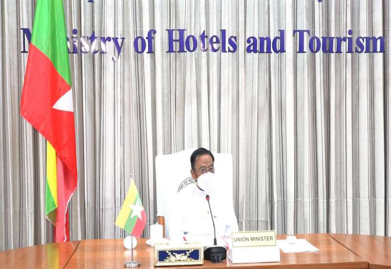 ဟိုတယ်နှင့်ခရီးသွားလာရေးဝန်ကြီးဌာန၊ ပြည်ထောင်စုဝန်ကြီး ဒေါက်တာဌေးအောင်နှင့် တာဝန်ရှိသူများသည် ယနေ့မွန်းလွဲပိုင်းတွင် ဝန်ကြီးဌာန၊ နီလာခန်းမ၌ စပိန်နိုင်ငံ၊ မက်ဒရစ်မြို့ ၌ ကမ္ဘာ့ခရီးသွားလုပ်ငန်းအဖွဲ့ချုပ်မှ ကြီးမှူးကျင်းပသော ကမ္ဘာလှည့်ခရီးသွားများအား ကာကွယ်စောင့်ရှောက်ရေးဆိုင်ရာ နိုင်ငံတကာစံနှုန်းများ (International Code for the Protection of Tourists) နှင့်စပ်လျဉ်းသည့် အာရှ-ပစိဖိတ် ဒေသတွင်းဆွေးနွေးပွဲသို့ အွန်လိုင်းမှတက်ရောက်သည်။