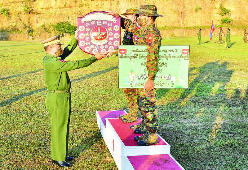 ပထမဆုံးအကြိမ်အဖြစ်ကျင်းပသည့် တပ်မတော် (ကြည်း၊ ရေ ၊ လေ ) ကိုယ်ခန္ဓာကြံ့ခိုင်မှုနှင့် တိုက်ပွဲဝင်စွမ်းဆောင်ရည်စစ်ဆေးမှုပြိုင်ပွဲ(ဗဟိုအဆင့်) ဆုချီးမြှင့်ပွဲအခမ်းအနားကို ယနေ့နံနက်ပိုင်းက နေပြည်တော်ရှိ နယ်မြေခံတန်းမြင့်လေ့ကျင့်ရေးသင်တန်းကျောင်း၌ ကျင်းပရာ နေပြည်တော်တိုင်းစစ်ဌာနချုပ် တိုင်းမှူးဗိုလ်ချုပ်ဇော်ဟိန်း၊ ဒုတိယတပ်မတော်လေ့ကျင့်ရေးအရာရှိချုပ် ဗိုလ်ချုပ်ကိုလေးနှင့် အရာရှိကြီးများ၊ တိုင်းစစ်ဌာနချုပ် ကွပ်ကဲမှုအောက်ရှိ တပ်ရင်း၊ တပ်ဖွဲ့များမှ တပ်ရင်း၊ တပ်ဖွဲ့မှူးများ၊ ပြိုင်ပွဲဝင်တပ်မတော်သားများ တက်ရောက်ကြသည်။