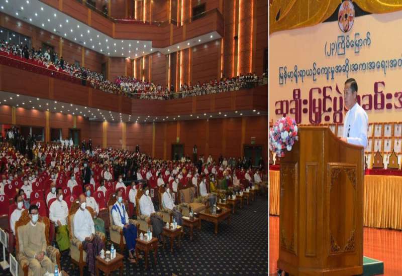 (၂၃)ကြိမ်မြောက် မြန်မာ့ရိုးရာယဉ်ကျေးမှု အဆို၊ အက၊ အရေး၊ အတီးပြိုင်ပွဲ ဂုဏ်ပြုမှတ်တမ်းလွှာပေးအပ်ပွဲနှင့် ဂုဏ်ပြုညစာစားပွဲအခမ်းအနားကို ယနေ့ညနေပိုင်းတွင် နေပြည်တော်ရှိ မြန်မာအပြည်ပြည်ဆိုင်ရာကွန်ဗင်းရှင်းဗဟိုဌာန-၂ ၌ ကျင်းပပြုလုပ်ရာ နိုင်ငံတော်စီမံအုပ်ချုပ်ရေးကောင်စီဥက္ကဋ္ဌ နိုင်ငံတော်ဝန်ကြီးချုပ် ဗိုလ်ချုပ်မှူးကြီးမင်းအောင်လှိုင် တက်ရောက်ချီးမြှင့်သည်။