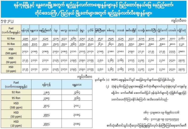 စီးပွားရေးနှင့် ကူးသန်းရောင်းဝယ်ရေးဝန်ကြီးဌာန စားသုံးဆီတင်သွင်းသိုလှောင်ဖြန့်ဖြူးခြင်းလုပ်ငန်း ကြီးကြပ်ရေးကော်မတီအနေဖြင့် စားအုန်းဆီကမ္ဘာ့ဈေးနှုန်းဖြစ်ပေါ် ပြောင်းလဲမှုနှင့်အညီ ပြည်တွင်း၌ ဖြစ်သင့်ဖြစ်ထိုက်သည့် ဈေးနှုန်းများဖြစ်ပေါ်စေရေး ထိန်းကျောင်းဆောင်ရွက်လျက်ရှိပြီး စားအုန်းဆီ အဓိကထုတ်လုပ်တင်ပို့သည့် မလေးရှားနိုင်ငံနှင့် အင်ဒိုနီးရှားနိုင်ငံတို့တွင် ဖြစ်ပေါ်နေသည့် FOB ဈေးနှုန်းများကို နေ့စဉ်စောင့်ကြည့်ကာ သယ်ယူပို့ဆောင်ခ ကုန်ကျစရိတ်များ၊ ဘဏ်စရိတ်များ၊ အခွန်အခများ ထည့်သွင်းတွက်ချက်၍ ပြည်တွင်းဈေးကွက်၌ ရောင်းဝယ်ဖောက်ကားရမည့် အခြေခံလက်ကားရည်ညွှန်းဈေးနှုန်းကို ထုတ်ပြန်ပေးလျက်ရှိသည်။