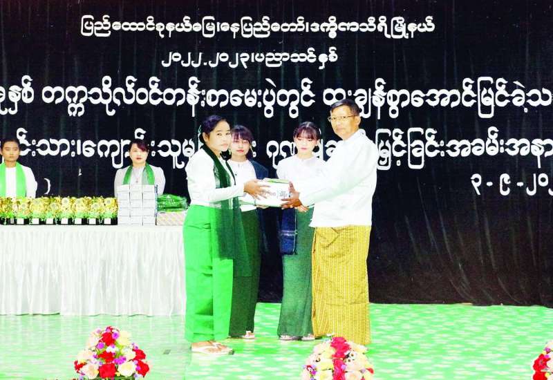 ပြည်ထောင်စုနယ်မြေ နေပြည်တော် ဒက္ခိဏသီရိမြို့နယ် အမှတ် (၁၈) အခြေခံပညာ အထက်တန်းကျောင်းသို့ ငွေပဒေသာပင် ငွေကျပ်သိန်း ၉၀၊ ကျောင်းဝတ်စုံ၊ အားကစားဝတ်စုံနှင့် နှာခေါင်းစည်းများ လှူဒါန်းပွဲနှင့် ၂၀၂၁-၂၀၂၂ ပညာသင်နှစ် တက္ကသိုလ်ဝင်စာမေးပွဲတွင် ထူးချွန်စွာ အောင်မြင်ခဲ့ကြသည့် ကျောင်းသား ကျောင်းသူများ ဂုဏ်ပြုဆုပေးအပ်ပွဲ အခမ်းအနားကို ယနေ့နံနက် ၈ နာရီခွဲတွင် အဆိုပါ ကျောင်းအစည်းအဝေးခန်းမ၌ ကျင်းပသည်။
