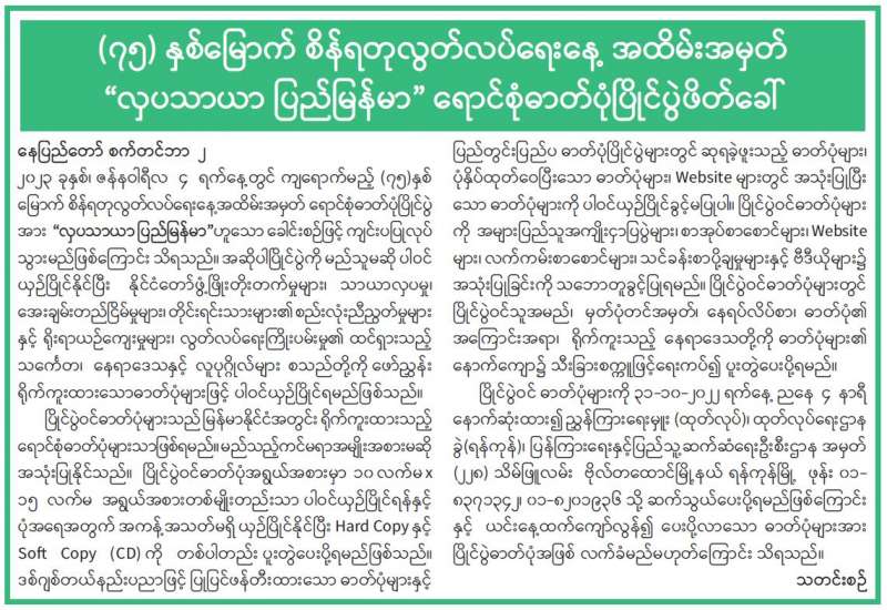 (၇၅) နှစ်မြောက် စိန်ရတုလွတ်လပ်ရေးနေ့ အထိမ်းအမှတ် “လှပသာယာ ပြည်မြန်မာ” ရောင်စုံဓာတ်ပုံ ပြိုင်ပွဲဖိတ်ခေါ်