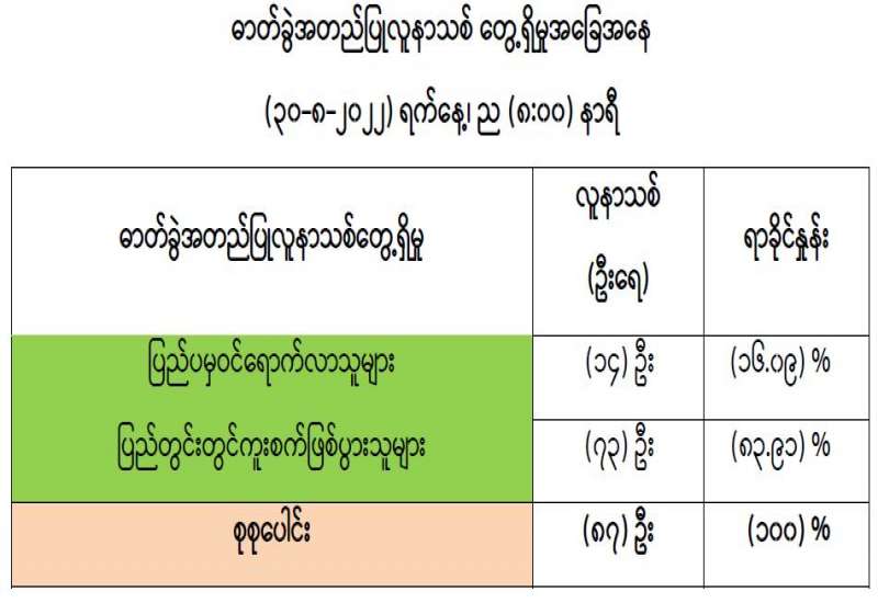 ကိုဗစ်-၁၉ ရောဂါပိုး ကူးစက်ပျံ့နှံ့မှုကို ဆက်လက်ထိန်းချုပ်ဆောင်ရွက်ရန် လိုအပ်ပါသဖြင့် ပြည်ထောင်စုအဆင့် အဖွဲ့အစည်းများ၊ ပြည်ထောင်စုဝန်ကြီးဌာနများမှ ကိုဗစ်-၁၉ ရောဂါ ကာကွယ်၊ ထိန်းချုပ်၊ တားဆီးရေးအတွက် ၂၀၂၂ ခုနှစ်၊ ဩဂုတ်လ ၃၁ ရက်နေ့အထိ ထုတ်ပြန်ထားသော ပြည်သူသို့ပန်ကြားချက်၊ အမိန့်၊ အမိန့်ကြော်ငြာစာ၊ ညွှန်ကြားချက်များ (ဖြေလျှော့ပေးမည့် ကိစ္စရပ်များ မပါ) အား ၂၀၂၂ ခုနှစ်၊ စက်တင်ဘာလ ၃၀ ရက်နေ့အထိ ရက်တိုးမြှင့်သတ်မှတ်ထားပါကြောင်း အသိပေးကြေညာအပ်ပါသည်။