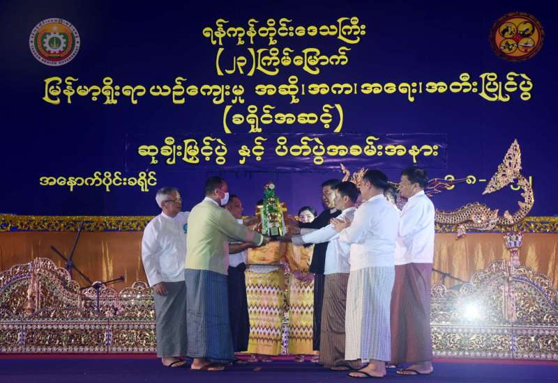 ရန်ကုန်တိုင်းဒေသကြီး ရန်ကုန်အနောက်ပိုင်ခရိုင် ၂၀၂၂ခုနှစ် (၂၃) ကြိမ်မြေက် အဆို၊ အက၊ အရေး၊ အတီး (ခရိုင်အဆင့်) ပြိုင်ပွဲ ဆုချီးမြှင့်ပွဲနှင့်ပိတ်ပွဲအခမ်းအနားကို ယနေ့ ညနေ (၃) နာရီတွင် အဆိုပါ မြန်မာကွန်းဗင်းရှင်းစင်တာ (MCC) ခန်းမ၌ ကျင်းပသည်။