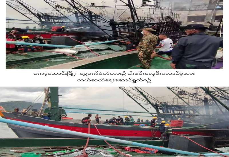 တနင်္သာရီတိုင်းဒေသကြီး၊ ကော့သောင်းမြို့၊ အေးရိပ်ငြိမ်ရပ်ကွက်၊ ရွှေဝက်ဝံတံတားအနီး၌ ဆိုက်ကပ်ထားသော အဏ္ဏဝါရပ်ကွက်နေ ဦးစိုးလွင်ပိုင်ဆိုင်သော ငါးဖမ်းစက်လှေ ၅ စီးအနက်မှ ထက်ထက်ပိုင်-၂၇ အမည်ရှိ ဝါးလတ်ငါးဖမ်းစက်လှေသည် မီးလိုင်းများပြုပြင်စဉ် ယနေ့မွန်းလွဲ ၁ နာရီခွဲခန့်တွင် လျှပ်စစ်ဝါယာရှော့ဖြစ်ရာမှတစ်ဆင့် စတင်မီးလောင်ကျွမ်းမှုဖြစ်ပွားခဲ့ပြီး အနီးရှိ ငါးဖမ်းစက်လှေ ၂ စီး မီးကူးစက်လောင်ကျွမ်းခဲ့သည်။
