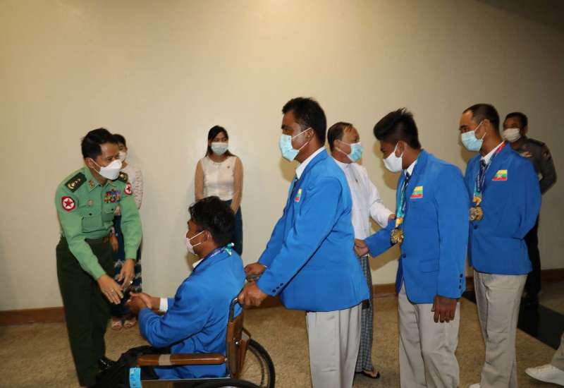 အင်ဒိုနီးရှားသမ္မတနိုင်ငံ၊ ဆိုလိုမြို့၌ ဇူလိုင် ၃၀ ရက်မှ သြဂုတ် ၆ ရက်အထိ ကျင်းပခဲ့သည့် (၁၁)ကြိမ်မြောက်အာဆီယံမသန်စွမ်းသူများ အားကစားပြိုင်ပွဲတွင် ရွှေတံဆိပ်(၁၄)ခု၊ ငွေတံဆိပ်(၁၂)ခု၊ ကြေးတံဆိပ်(၁၇)ခု၊ နိုင်ငံအလိုက်အဆင့်(၆)ရရှိခဲ့သည့် မြန်မာနိုင်ငံကိုယ်စားပြု အောင်ပွဲရ မြန်မာနိုင်ငံမသန်စွမ်းသူများ အားကစားအဖွဲ့သည် ယနေ့နံနက် ၅ နာရီခွဲက မြန်မာအမျိုးသားလေကြောင်းလိုင်း စင်းလုံးငှားလေယာဉ်ဖြင့် ရန်ကုန်အပြည်ပြည်ဆိုင်ရာလေဆိပ်သို့ ပြန်လည်ရောက်ရှိသည်။