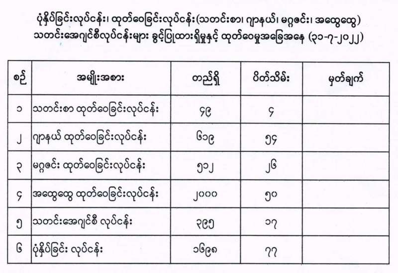 ပုံနှိပ်ခြင်းလုပ်ငန်း၊ ထုတ်ဝေခြင်းလုပ်ငန်း (သတင်းစာ၊ ဂျာနယ်၊ မဂ္ဂဇင်း၊ အထွေထွေ) သတင်းအေဂျင်စီလုပ်ငန်းများ ခွင့်ပြုထားရှိမှုနှင့် ထုတ်ဝေမှုအခြေအနေ(၃၁-၇-၂၀၂၂)