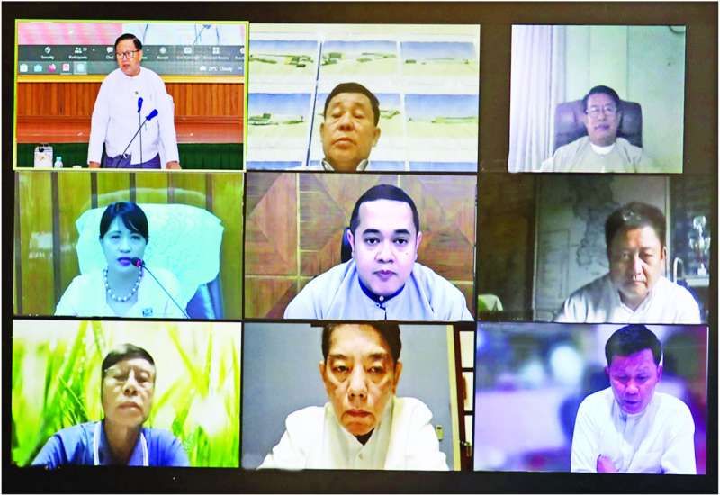 ပြည်ထောင်စုအစိုးရအဖွဲ့ လုပ်ငန်းဆောင်ရွက်ချက်များနှင့် စပ်လျဉ်းသည့်ညှိနှိုင်းအစည်းအဝေးကို ယနေ့နံနက်ပိုင်းတွင် နိုင်ငံတော်စီမံအုပ်ချုပ်ရေးကောင်စီဥက္ကဋ္ဌရုံး အစည်းအဝေးခန်းမ၌ ကျင်းပပြုလုပ်ရာ နိုင်ငံတော်စီမံအုပ်ချုပ်ရေးကောင်စီဥက္ကဋ္ဌ နိုင်ငံတော်ဝန်ကြီးချုပ် ဗိုလ်ချုပ်မှူးကြီး မင်းအောင်လှိုင် တက်ရောက်အမှာစကား ပြောကြားသည်။