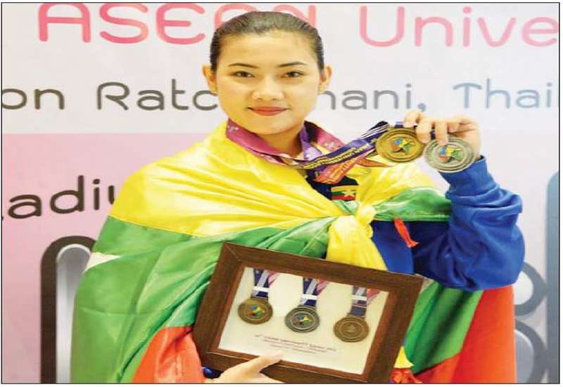 အကြိမ်(၂၀)မြောက် အာဆီယံတက္ကသိုလ်များ အားကစားပြိုင်ပွဲများကို ထိုင်းနိုင်ငံ အူဘွန်ရတ်ချဌာနီမြို့တွင် ဆက်လက်ကျင်းပလျက်ရှိရာ ယနေ့နံနက် ၁၀ နာရီ က Sunee Tower ၌ ကျင်းပသည့် ဝူရှူးအားကစားပြိုင်ပွဲ နောက်ဆုံးပွဲစဉ်များဖြစ်သည့် အမျိုးသမီး ထိုက်ချိကျန့်ပြိုင်ပွဲ၊ အမျိုးသမီး နန်းသောင်းပြိုင်ပွဲ၊ အမျိုးသားအတွဲအတိုက်၊ အမျိုးသမီးအတွဲအတိုက် ပွဲစဉ်များ၌ တက္ကသိုလ်ဝူရှူးအားကစားအဖွဲ့မှ မအေးသစ္စာမြင့် က ရွှေတံဆိပ် (ယာပုံ)နှင့် မမြတ်နိုးအိမ်က ငွေတံဆိပ်ဆုများကို ထပ်မံဆွတ်ခူးရရှိသည်။