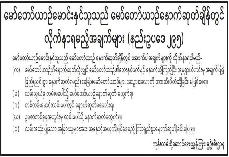 မော်တော်ယာဉ်မောင်းနှင်သူသည် မော်တော်ယာဉ်နောက်ဆုတ်ချိန်တွင် လိုက်နာရမည့် အချက်များ (နည်းဥပဒေ ၂၉၅)