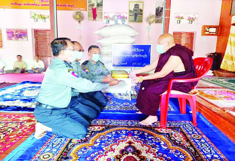 ပြည်ထဲရေးဝန်ကြီးဌာန တပ်ဖွဲ့ဝင်/ဝန်ထမ်း အရာထမ်း၊ အမှုထမ်း မိသားစုများက မြို့နယ်အသီးသီးရှိ ဘုန်းတော်ကြီးကျောင်းများသို့ ဆွမ်းဆန်တော်များ ဆက်ကပ်လှူဒါန်းခြင်းကို ဆောင်ရွက်လျက်ရှိသည်။