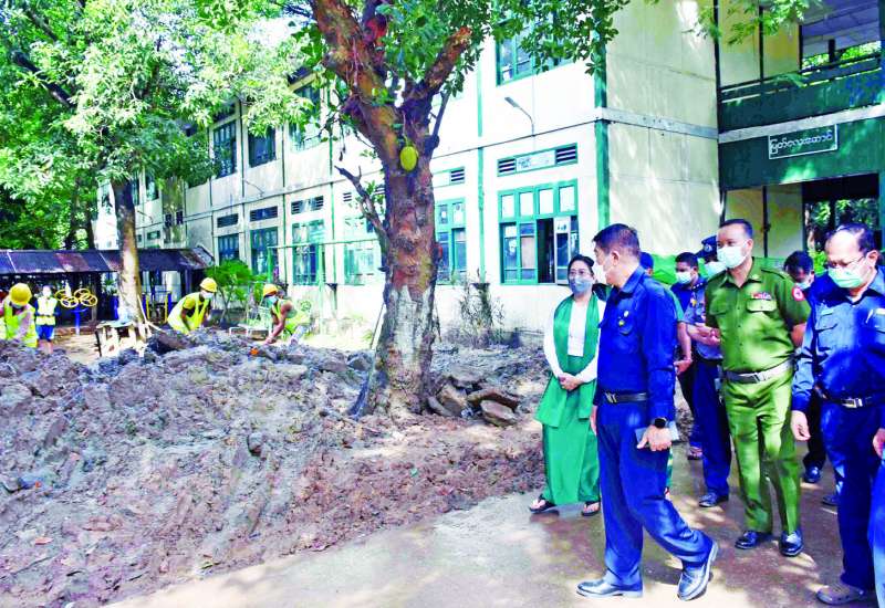 ရန်ကုန်တိုင်းဒေသကြီး စည်ပင်သာယာရေးဝန်ကြီး၊ ရန်ကုန်မြို့တော်စည်ပင်သာယာရေးကော်မတီဥက္ကဋ္ဌ (မြို့တော်ဝန်) ဦးဗိုလ်ဌေးသည် ဒုတိယဥက္ကဋ္ဌ (ဒုတိယ မြို့တော်ဝန်)ဦးညီညီ၊ အတွင်းရေးမှူး ဦးညွန့်ဖေနှင့် ကော်မတီဝင်များနှင့်အတူ ယနေ့ နံနက် ၇ နာရီတွင် အင်းစိန်မြို့နယ် စဉ့်ငူရပ်ကွက် အောက်မင်္ဂလာဒုံလမ်းရှိ ဆေးဘက်ဆိုင်ရာ နည်းပညာတက္ကသိုလ် (ရန်ကုန်)ကျောင်းသို့ သွားရောက်၍ မြို့နယ်စီမံအုပ်ချုပ်ရေးအဖွဲ့နှင့် စည်ပင်သာယာအုပ်ချုပ်ရေးမှူးရုံးတို့၏