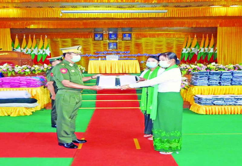 ၂၀၂၂-၂၀၂၃ ပညာသင်နှစ်တွင် တက်ရောက်ပညာသင်ကြားကြမည့် အရှေ့မြောက်တိုင်းစစ်ဌာနချုပ်မှ ကျောင်းသား၊ ကျောင်းသူများအတွက် ကျောင်းဝတ်စုံ၊ မိုးကာအင်္ကျီ၊ ကျောပိုးအိတ်နှင့် ကျောင်းသုံးစာရေးကိရိယာများပေးအပ်ခြင်းကို ယနေ့နံနက်ပိုင်းက တိုင်းစစ် ဌာနချုပ်ခန်းမ၌ပြုလုပ်ရာ တိုင်းမှူးဗိုလ်ချုပ်နိုင်နိုင်ဦးနှင့်တာဝန်ရှိသူများ၊ ဆရာ၊ ဆရာမများနှင့် ကျောင်းသား၊ ကျောင်းသူများတက်ရောက်ကြသည်။