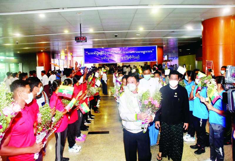 ၂၀၂၂ ခုနှစ် မေ ၁၂ ရက်မှ ၂၃ ရက်အထိ ဗီယက်နမ်နိုင်ငံ ဟနွိုင်းမြို့နှင့် အခြားဆက်စပ်မြို့များ၌ ကျင်းပနေသည့် (၃၁)ကြိမ်မြောက် အရှေ့တောင်အာရှ အားကစားပြိုင်ပွဲတွင် ဝင်ရောက်ယှဉ်ပြိုင်ခဲ့သော မြန်မာအားကစားသမားအဖွဲ့သည် ဖိတ်ကြားခံပုဂ္ဂိုလ်အဖြစ် တက်ရောက်ခဲ့သည့် မြန်မာနိုင်ငံ အိုလံပစ်ကော်မတီဥက္ကဋ္ဌ အားကစားနှင့် လူငယ်ရေးရာဝန်ကြီးဌာန ပြည်ထောင်စုဝန်ကြီး ဦးမင်းသိန်းဇံနှင့်အတူ မေ ၂၂ ရက်တွင် ရန်ကုန်အပြည်ပြည်ဆိုင်ရာလေဆိပ်သို့ မြန်မာ့လေကြောင်း စင်းလုံးငှားလေယာဉ်ဖြင့် ပြန်လည်ရောက်ရှိလာသည်။