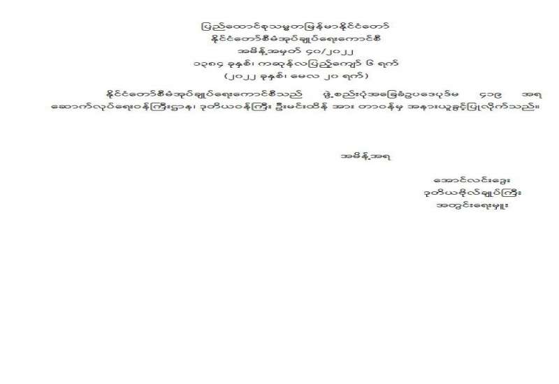 ပြည်ထောင်စုသမ္မတမြန်မာနိုင်ငံတော် နိုင်ငံတော်စီမံအုပ်ချုပ်ရေးကောင်စီ အမိန့်အမှတ် ၄၀/၂၀၂၂ ၁၃၈၄ ခုနှစ်၊ ကဆုန်လပြည့်ကျော် ၆ ရက် (၂၀၂၂ ခုနှစ်၊ မေလ ၂၀ ရက်)