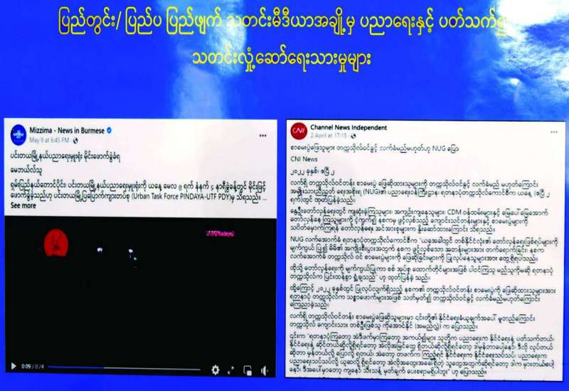 အကြမ်းဖက်အုပ်စုအဖြစ်ကြေညာထားသော CRPH၊ NUG နှင့် ယင်းတို့၏ လက်အောက်ခံ အဖွဲ့အစည်းများ၊ ယင်းတို့နှင့်ဆက်နွှယ်နေသော အဖွဲ့အစည်းများ၊ လူပုဂ္ဂိုလ်များသည် နိုင်ငံတော် တည်ငြိမ်အေးချမ်းရေးကို ပျက်ပြားစေရန်နှင့် ပြည်သူလူထုကို အကြောက်တရားများ ဖြစ်ပေါ်စေပြီး အစိုးရယန္တရားများ ပျက်ပြားစေရန် ရည်ရွယ်လျက် လှုံ့ဆော်ခြင်း၊ ဝါဒဖြန့်ခြင်း၊ ခြိမ်းခြောက်ခြင်းများကို လူမှုကွန်ရက်များမှတစ်ဆင့် နည်းမျိုးစုံဖြင့် ပြုလုပ်လျက်ရှိပါသည်။