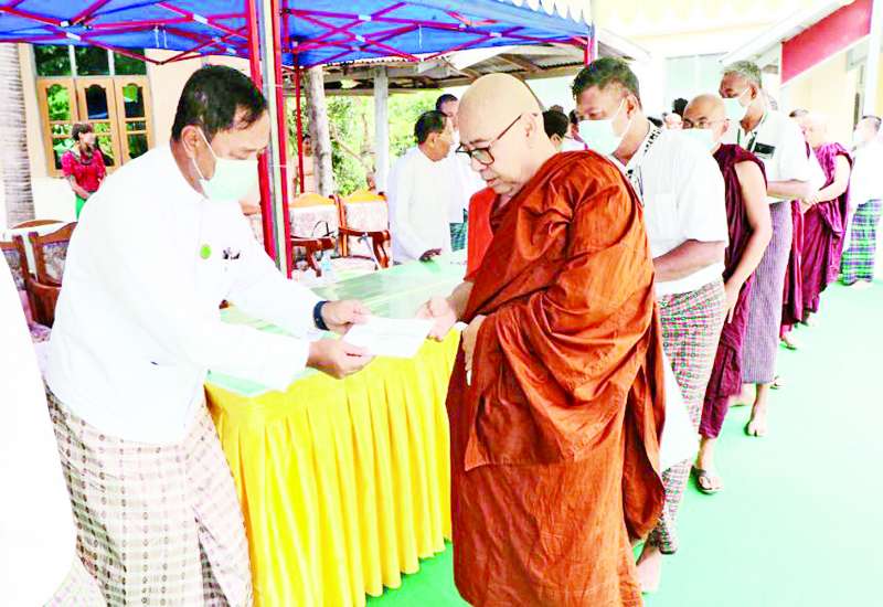 သမဝါယမနှင့်ကျေးလက်ဖွံ့ဖြိုးရေးဝန်ကြီးဌာန ပထမအကြိမ် စုပေါင်းဒုလ္လဘ ရဟန်းခံ၊ ရှင်ပြု၊ သီလရှင်ဝတ်အလှူတော် မင်္ဂလာအခမ်းအနားကို ယနေ့တွင် သီရိဂန္ဓမာသပြေအေး မိုးကုတ် ဝိပဿနာကျောင်းတိုက်၌ကျင်းပရာ နိုင်ငံတော် ကောင်စီဝင်များနှင့်ဇနီးများ၊ သမဝါယမနှင့် ကျေးလက်ဖွံ့ဖြိုးရေးဝန်ကြီးဌာန ပြည်ထောင်စုဝန်ကြီး ဦးလှမိုးနှင့်ဇနီး ဒေါ်ကြည်ကြည်မေ၊ ပြည်ထောင်စုဝန်ကြီးများနှင့်ဇနီးများ၊ ဖိတ်ကြားထားသော ဧည့်သည်တော်များ တက်ရောက်ကြသည်။